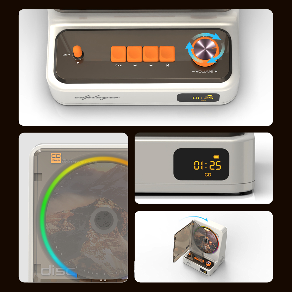 Retro CD Player, Wall Mounted or Desktop Stand, with Bluetooth & USB port